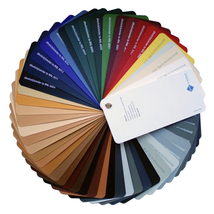 Möglichkeit zur Auswahl einer beliebigen Farbe aus der RAL-Palette bei Verwendung einer Aluminiumverkleidung. Top VEKA-Profile nach höchstem RAL-Qualitätsstandard – Klasse A nach DIN EN 12608.